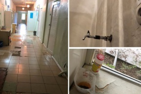 An infectious disease hospital is going to fall down in Kaskelen. The walls of building is cracked. Moreover, it is clearly seen that the floor of cor..