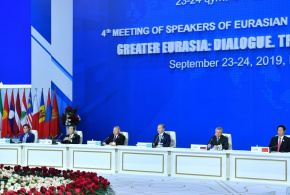 The fourth meeting of speakers of parliaments of the countries of Eurasia on the topic "Greater Eurasia: Dialogue. Trust. Partnership" starts in Nur-..