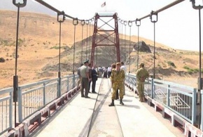 The automobile and pedestrian bridge across the Pyanj River, which connects the Tajik district of Shokhin with the north of Afghanistan was opened, re..
