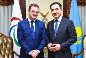 Prime Minister of the Republic of Kazakhstan Bakytzhan Sagintayev meets with the President of the International Paralympic Committee Andrew Parsons, t..
