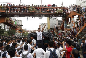 Bangladeşte eki mektep oquşısınıñ öliminen keyin bastalğan ükimetke narazılıq şarası bir aptağa sozıldı. Mektep oquşıları men studentter wyımdastırğan..